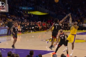 GIF-詹姆斯单挑阿门 翻身后仰还能中