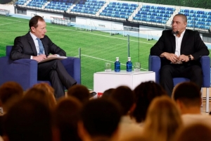 体育资讯3月24日讯 皇家马德里欧洲大学学校的‘白色周’活动正式启动,首日活动由俱乐部关系总监布特拉格诺主持。由皇马俱乐部的四位传奇人物罗伯托·卡洛斯、塞尔吉奥·罗德里格斯、费利佩·雷耶斯和鲁迪·费尔南德斯共同揭幕。