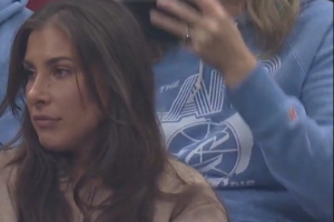 GIF-篮球精准砸翻场边球迷的啤酒 球迷不开心了